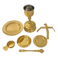 Потир 0,5л вкладыш (нерж.сталь) с принадлежностями золочение в метал. футляре