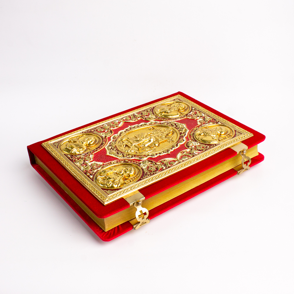 Апостол 300х215 мм бархат красный накладки полимер поталь