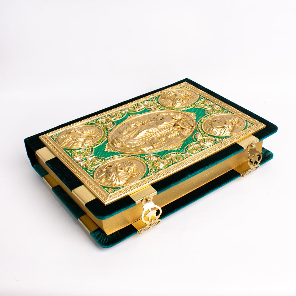Евангелие напрестольное бархат зеленый накладки полимер поталь