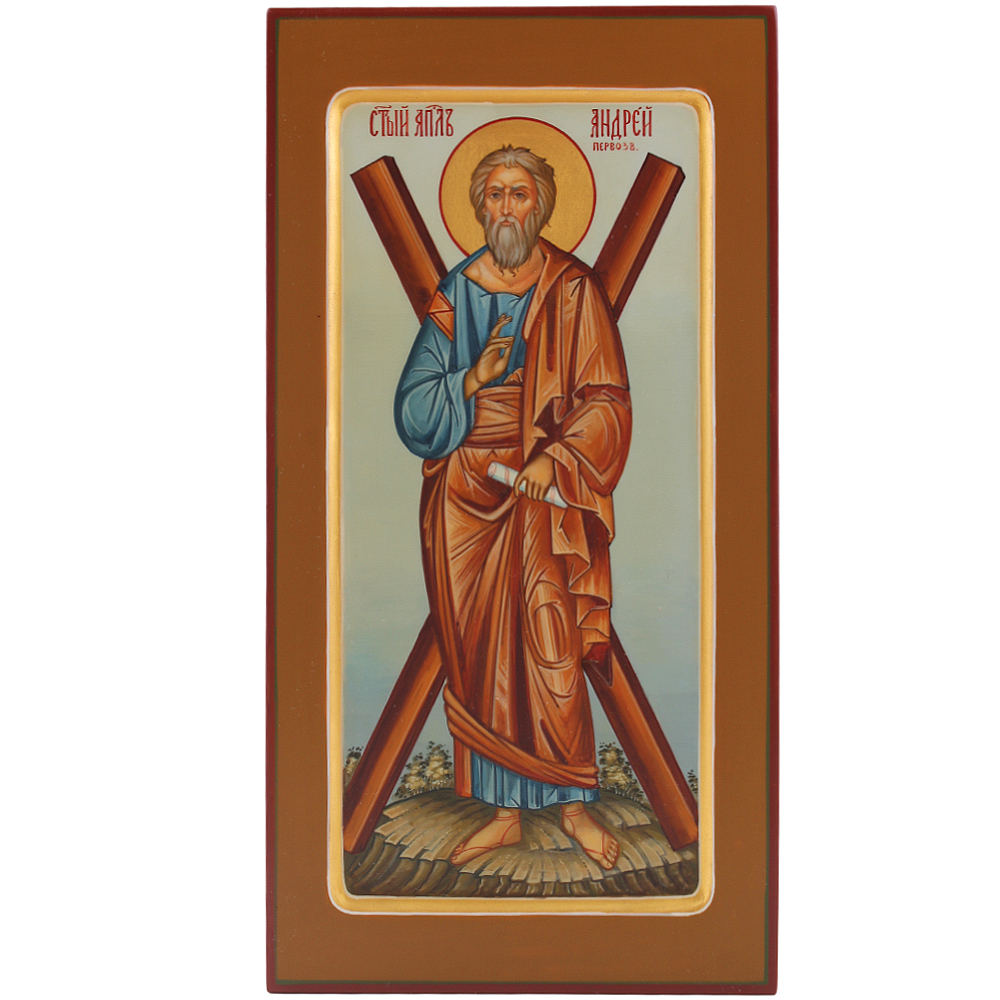 Икона 13х25 Андрей Первозванный, письмо, темпера, золочение