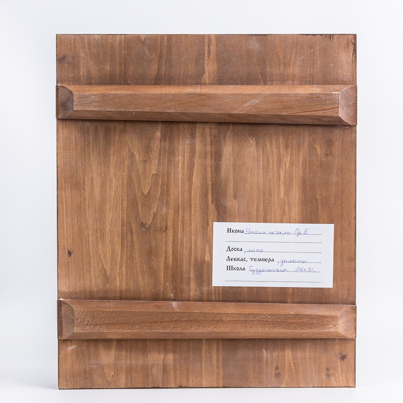 Икона ручной работы, написана в соответствии с православным каноном по традиционной технологии темперной живописи, покрыта масляным лаком с добавлением воска.