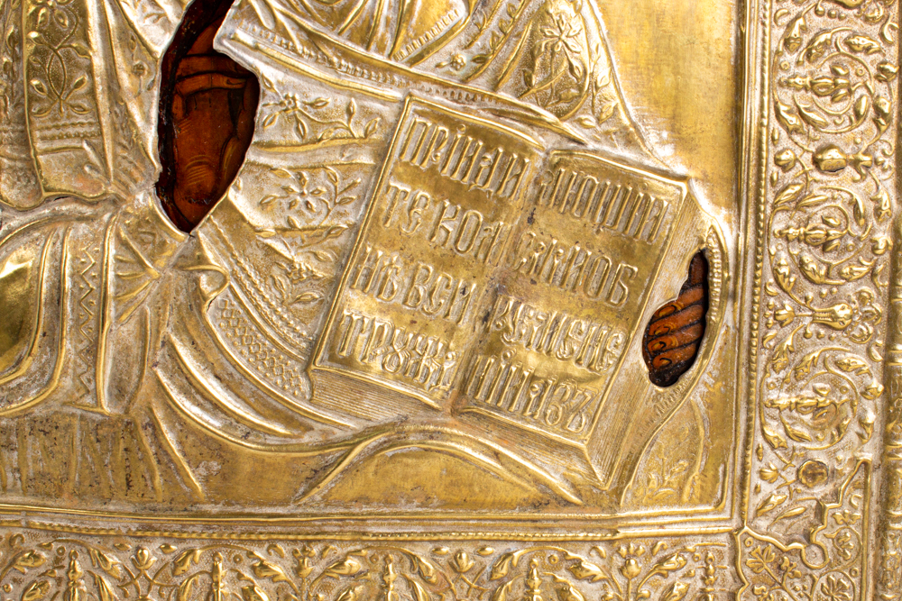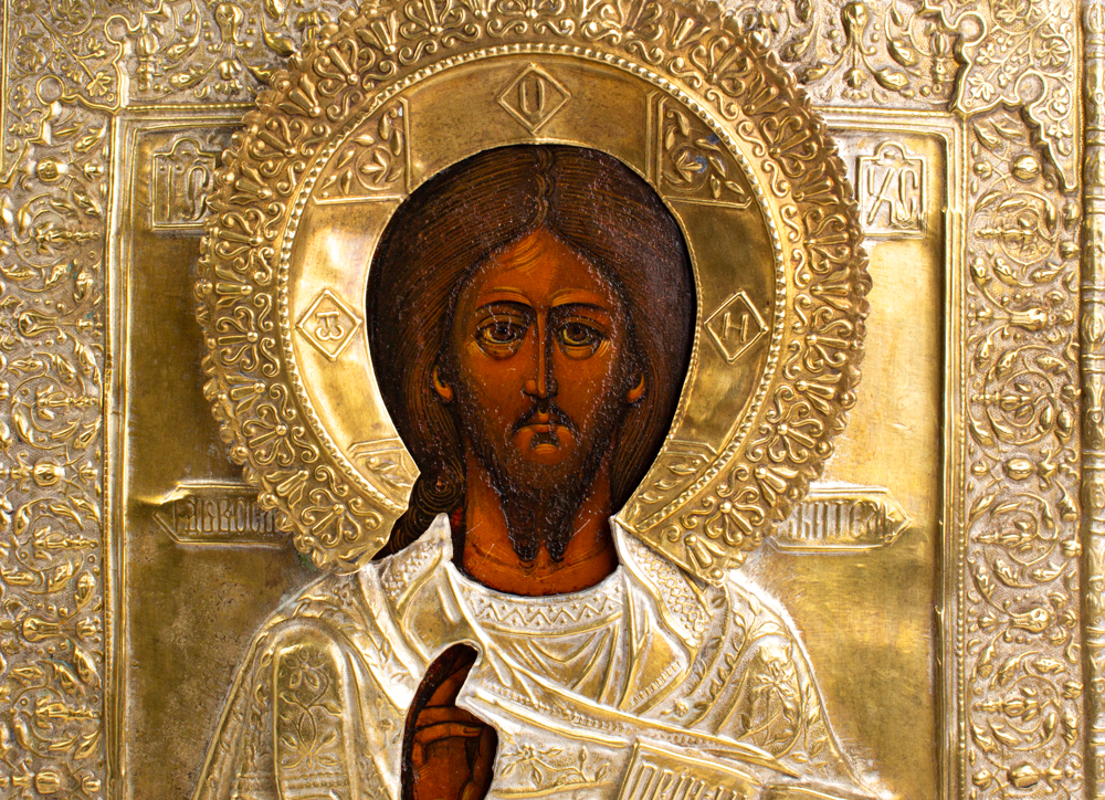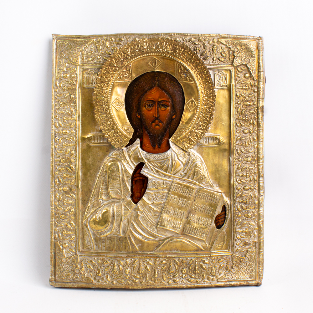 Икона живописная Господь Вседержитель 26х30 оклад 19 век
