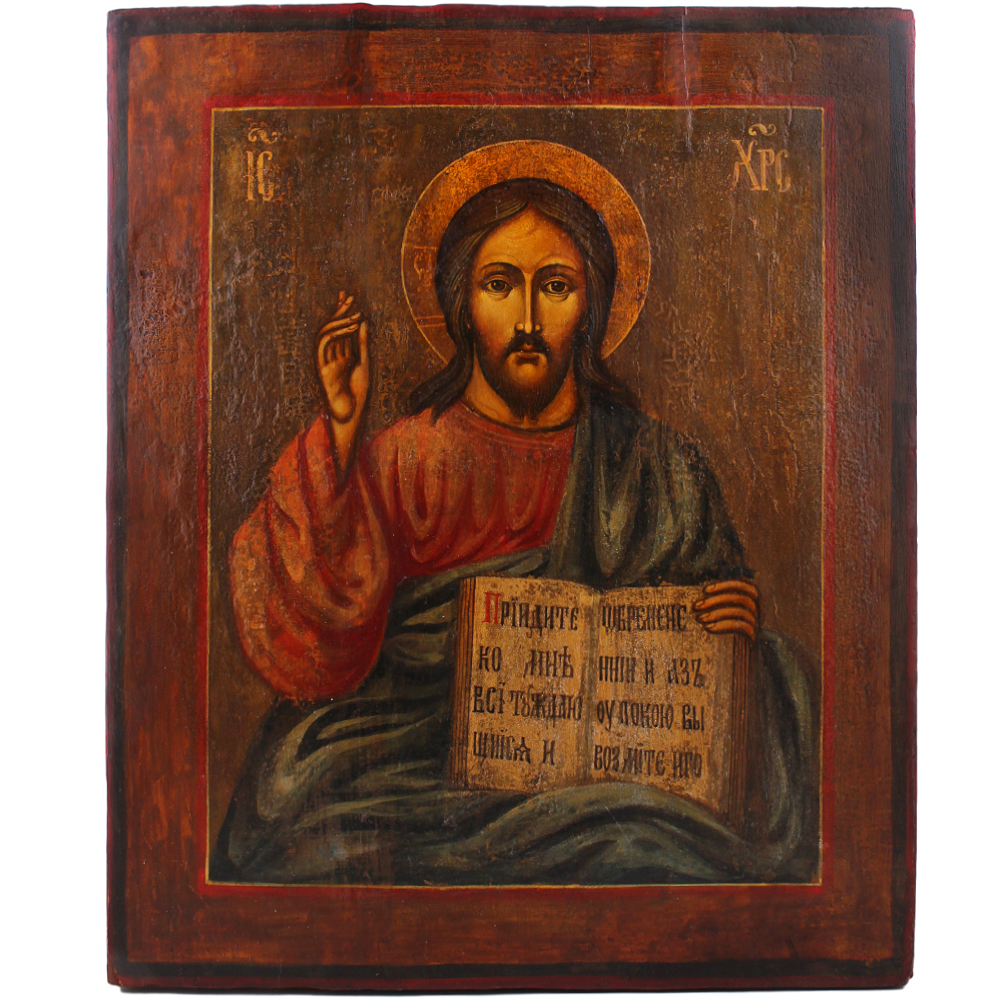 Икона живописная Господь Вседержитель 30х36 19 век
