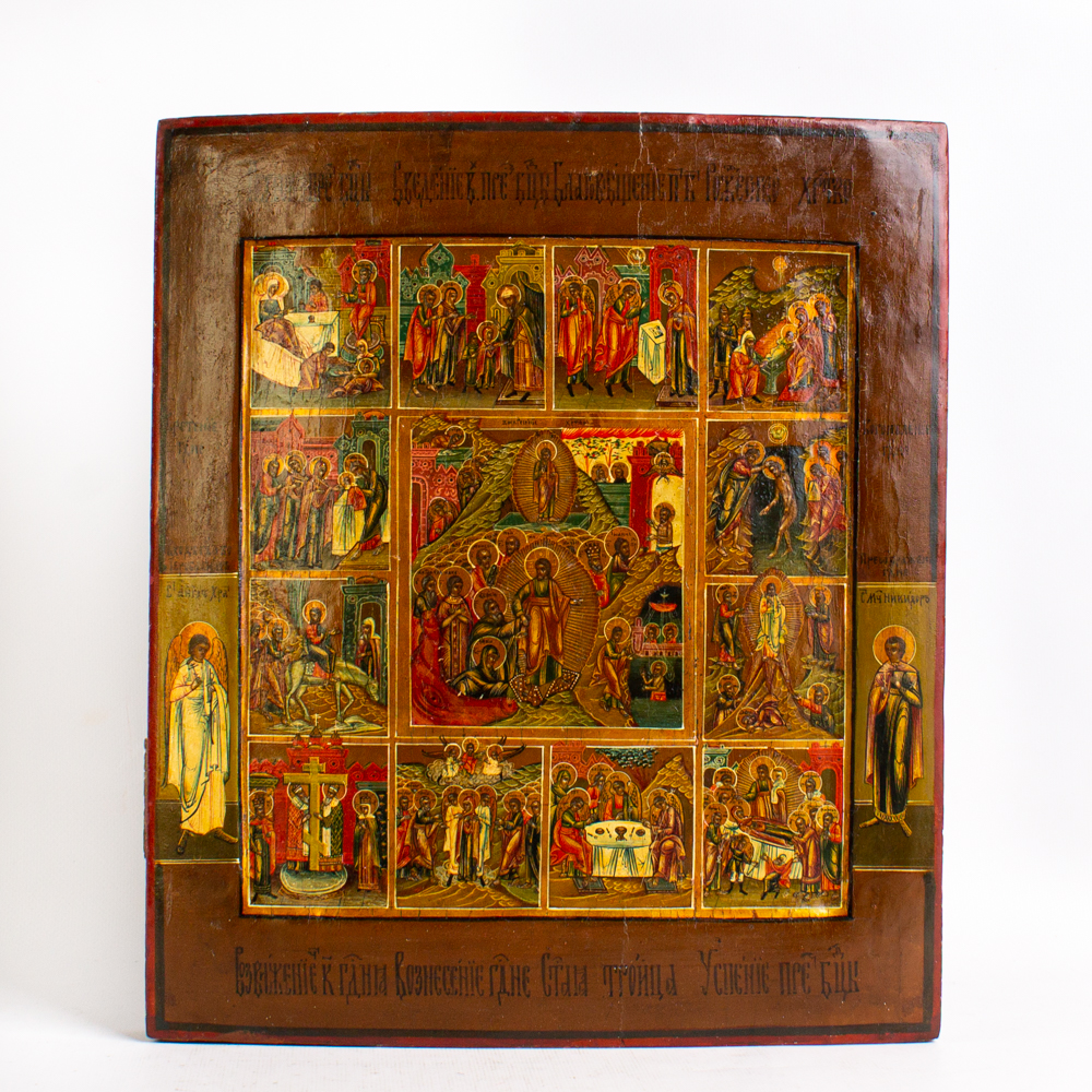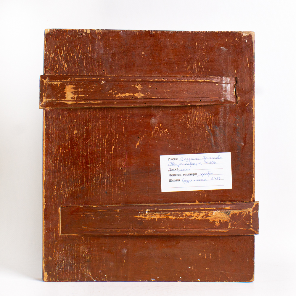 Икона ручной работы, XIX век, написана в соответствии с православным каноном по традиционной технологии темперной живописи, покрыта масляным лаком с добавлением воска.