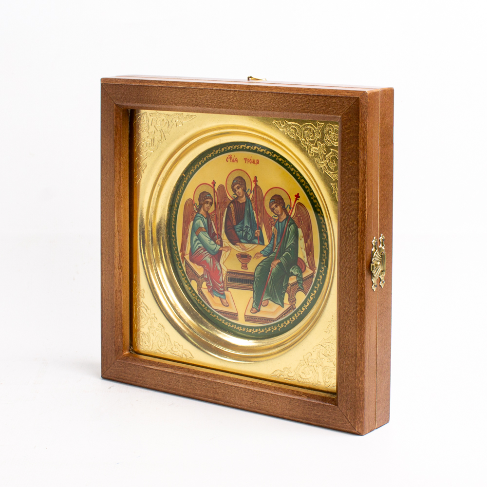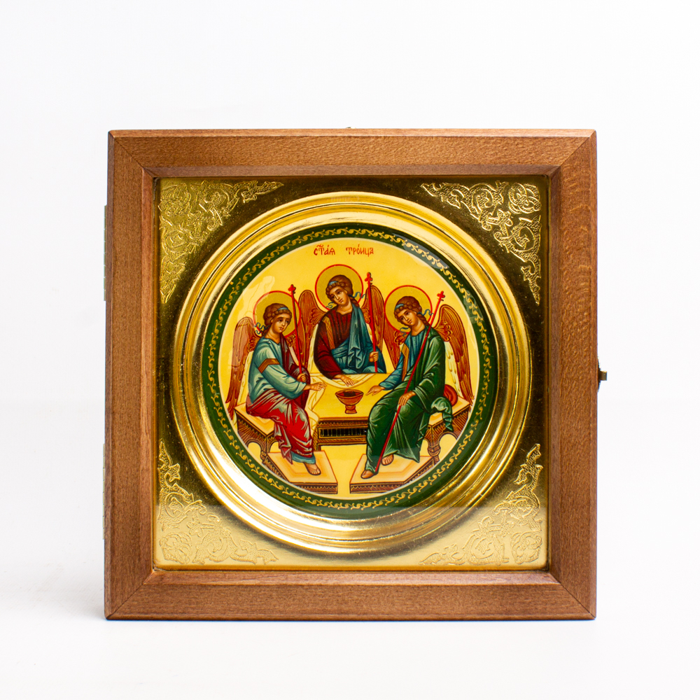 Икона живописная Троица Св. d 13 см папье-маше