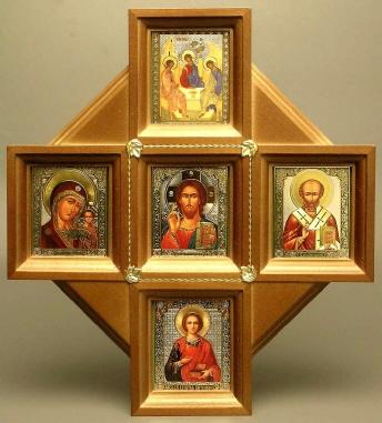 Икона в киоте 6*7 многоместная, двойное тиснение, 5 икон