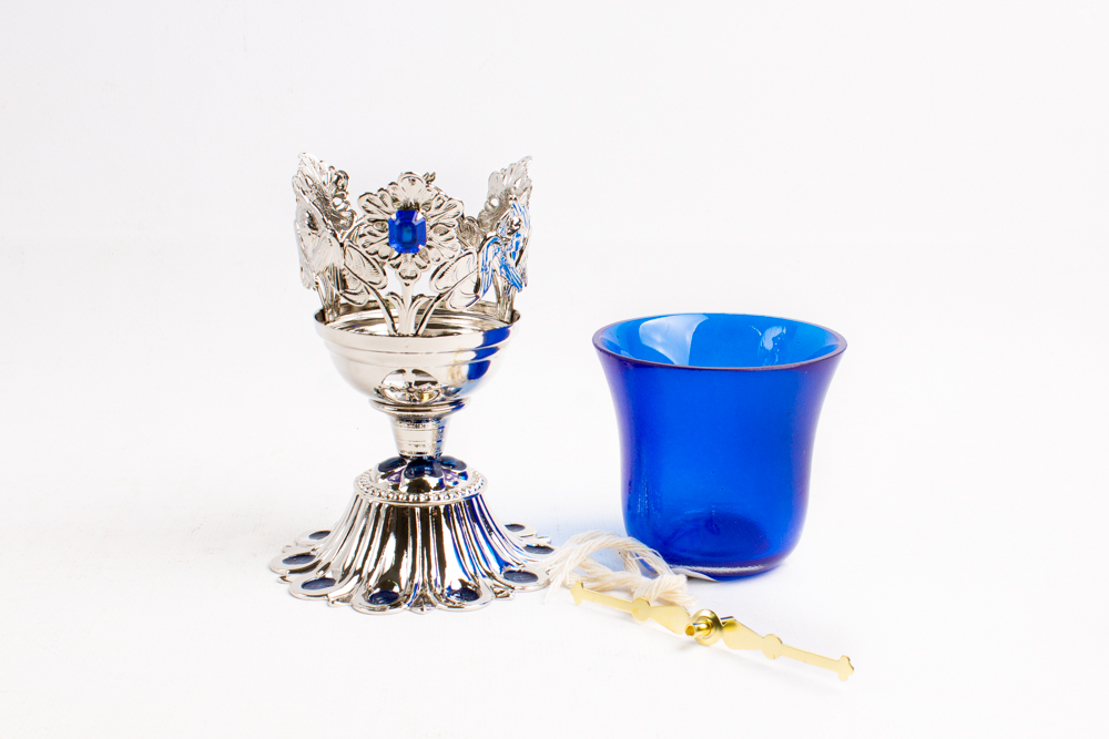 Лампада настольная №30 (3041631) эмаль, никель, синяя