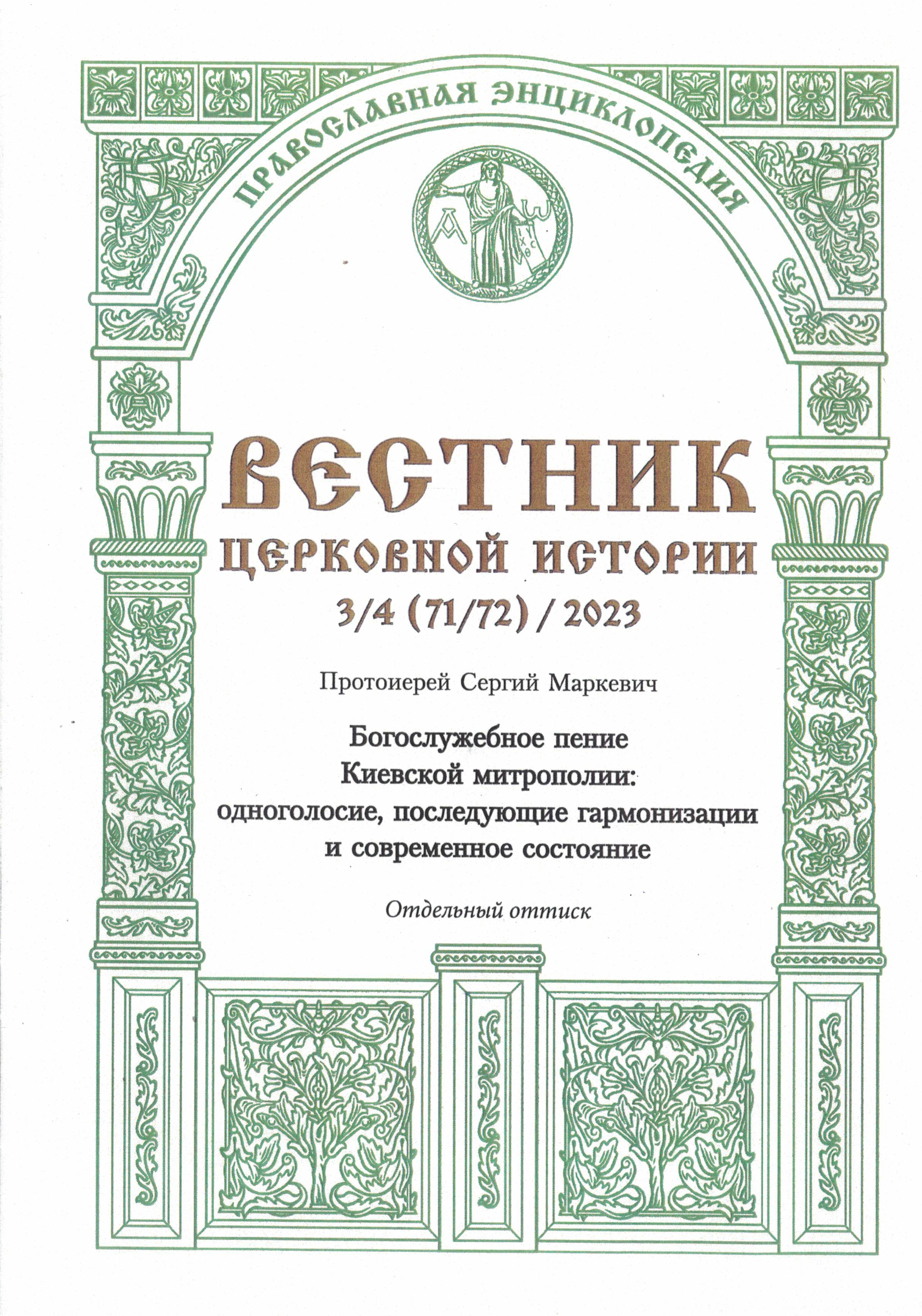 Вестник церковной истории 3/4 2023.Богослужебное пение Киев.митрополии