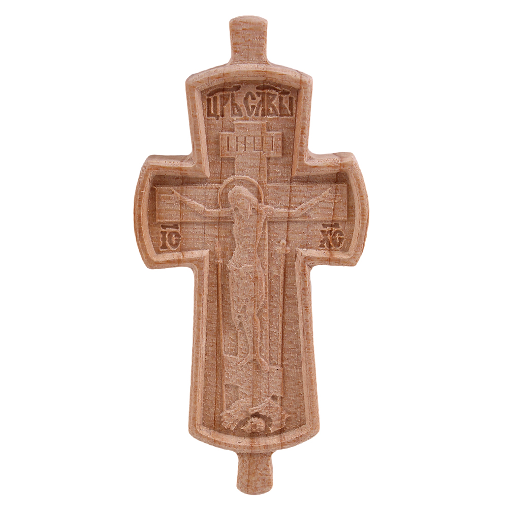 Крест Параманный Годеновский. Выполнен из массива дуба. Задняя сторона имеет обтекаемую форму. Габаритные размеры: 6х10 см. Толщина 1,3см. Параман – одна из частей облачения монаха, постриженного в малую схиму. Он состоит из квадратного плата, на котором изображены орудия Страстей Христовых, и деревянного параманного креста. Плат носят поверх рубахи на спине – от посторонних взоров он скрыт подрясником. Крест находится на груди. Крест и плат соединяются между собой шнуром, который опоясывает своего носителя «по раменам». Поэтому в русском языке параманный крест иногда именуют «пораменным», хотя изначально слово «параман» греческое и означает «добавление к мантии». Параманные кресты - это монашеские кресты, которые надеваются во время пострига и носятся под верхней одеждой. Вверху и внизу параманный крест имеет ушки, предназначенные для продевания шнура. Эти ушки являются его отличительной особенностью. Каждый крест уникален, поэтому некоторые детали (лик, линии, мелкие детали) могут отличаться от представленного на фото образца.