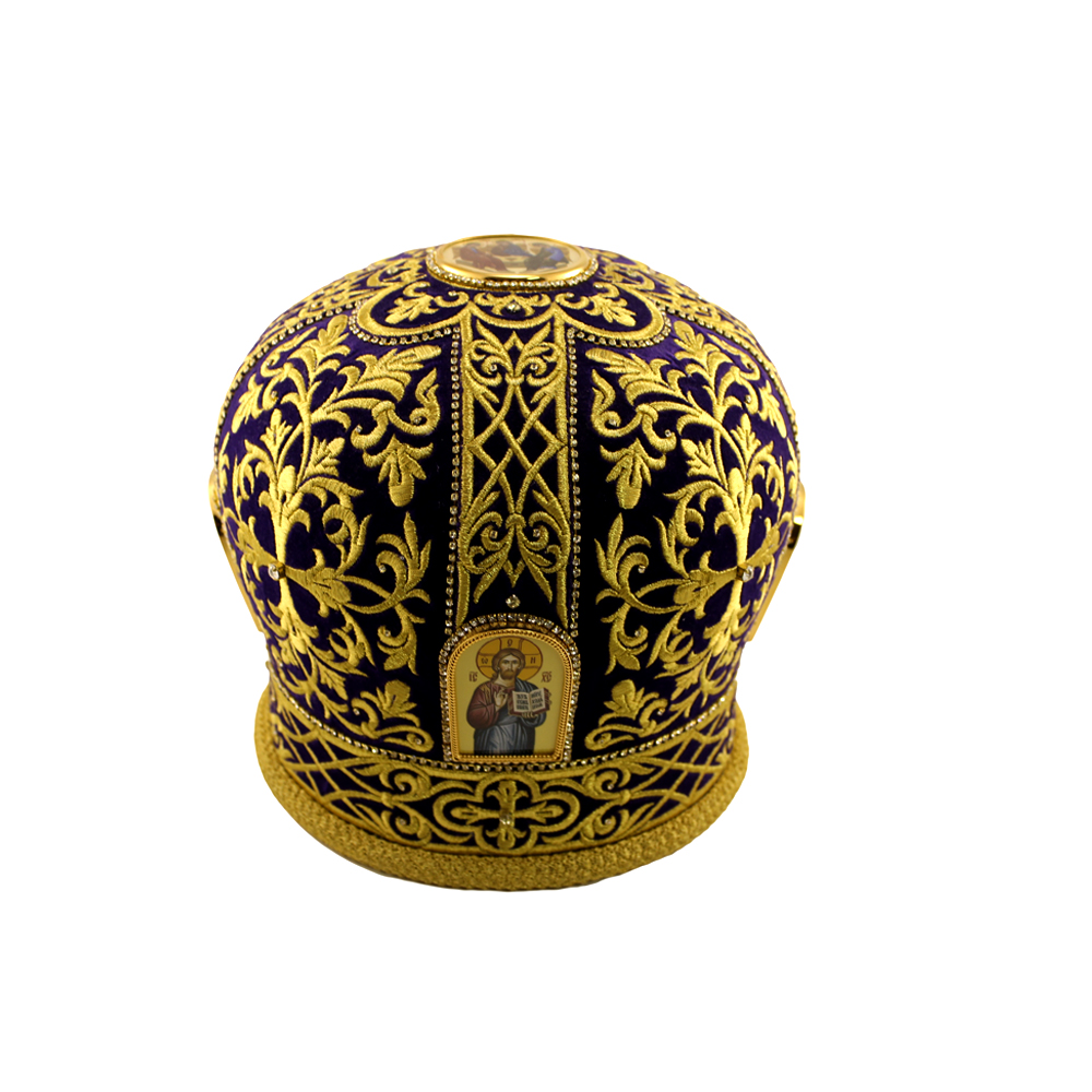 Митра фиолетовая машинная вышивка бархат р.62,5