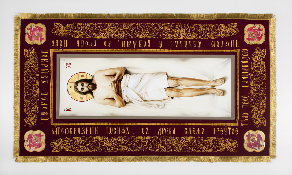 Плащаница выносная (4460942) бархат на холсте Спаситель №1