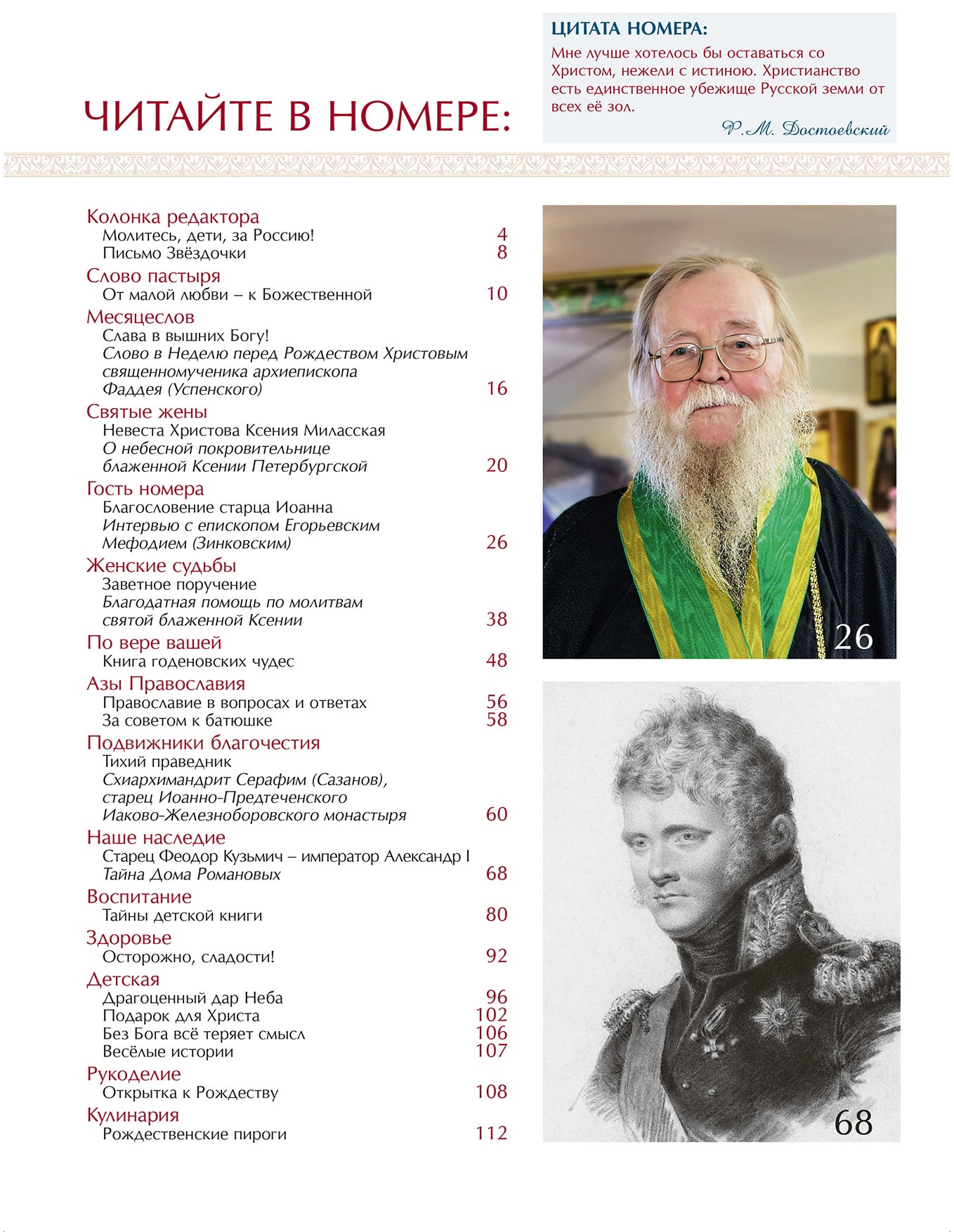 И еще много интересного вы найдете в наших традиционных рубриках: «Месяцеслов», «Азы Православия», «Женские судьбы», «Рукоделие», «Детская» и «Кулинария».