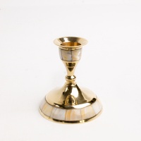 Подсвечник латунь с перламутром,прямой,на круглом основании арт.00238