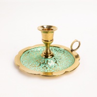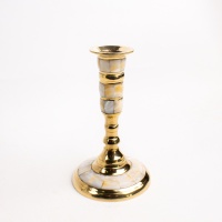 Подсвечник латунь с перламутром,прямой,на круглом основании арт.00238