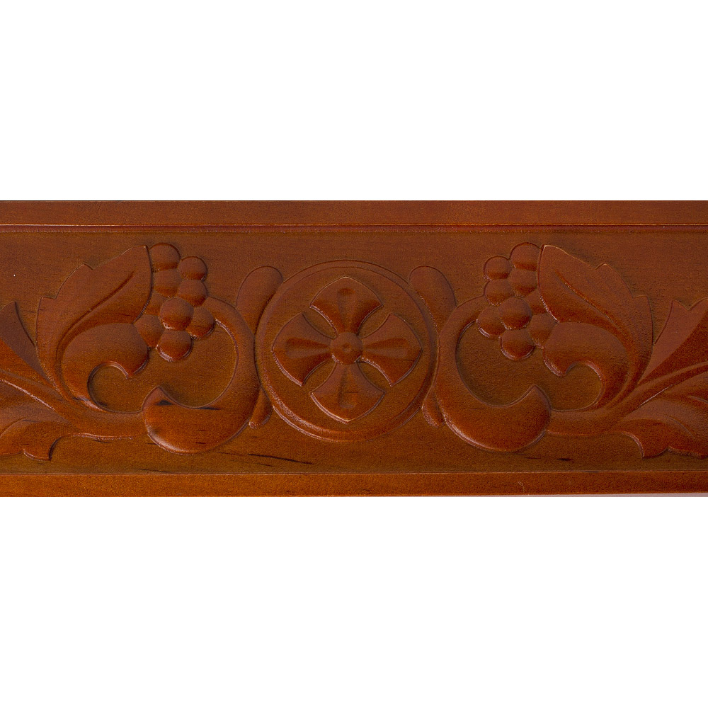 Полка деревянная для домашнего иконостаса прямая с изображением Креста в круглом орнаменте.