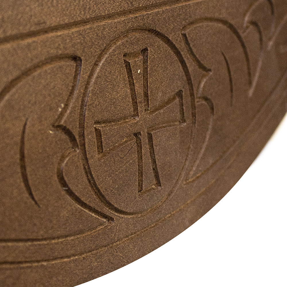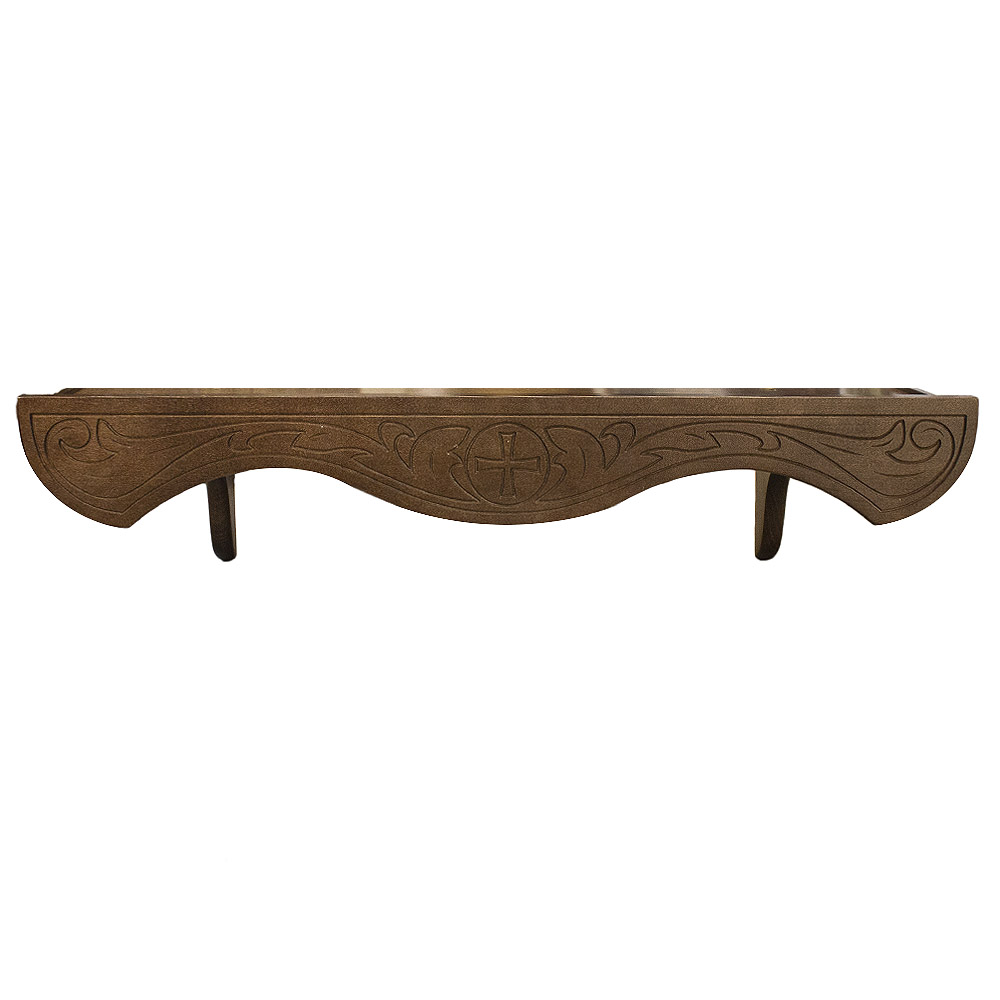 Полка деревянная для домашнего иконостаса прямая с изображением Креста в круглом орнаменте.