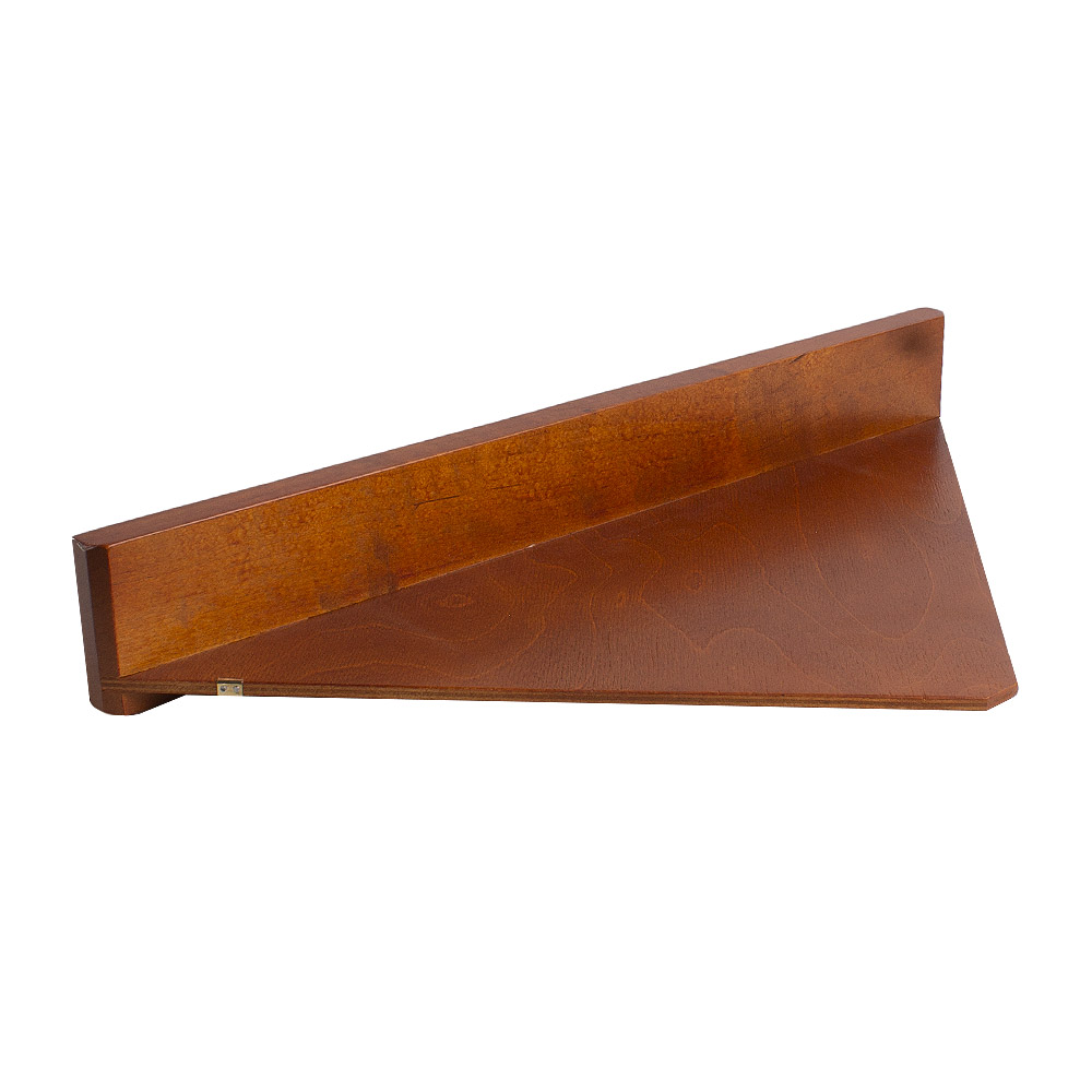 Полка имеет два деревянных упора и крепится к стене при помощи металлических петель на двух крючках.