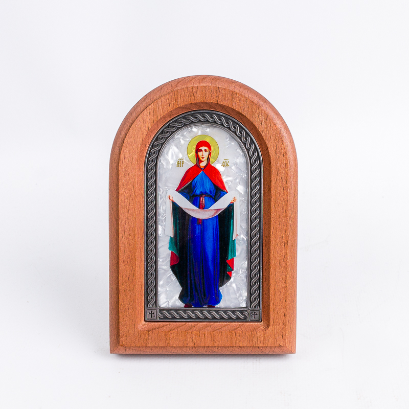 Икона арочная 9х14 перламутр, чернение БМ Покров