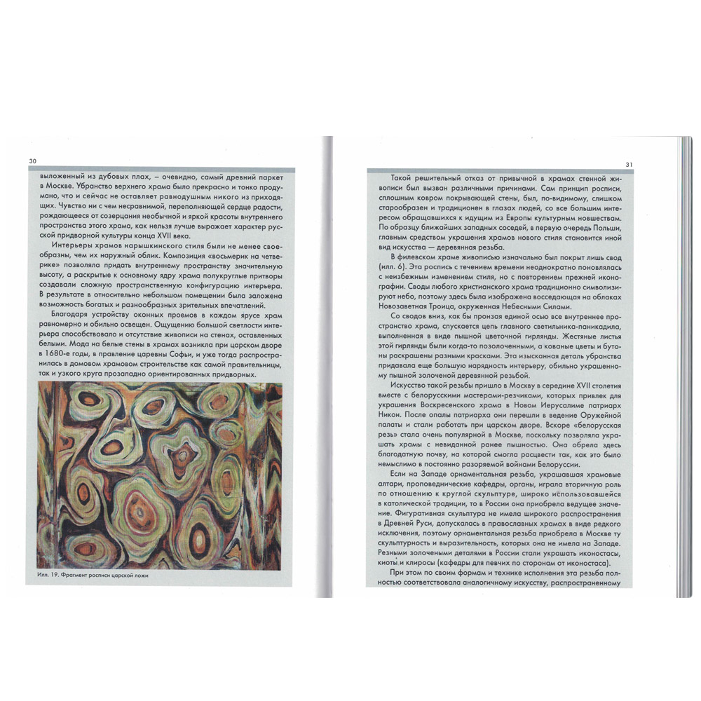 В последние два десятилетия XVII века, на которые пришлись первые годы царствования молодого Петра I, в русской архитектуре сложился и расцвел новый оригинальный стиль. Позднее он получил название "нарышкинского" по имени ближайших родственников царя - строителей необычных, новаторских по своему облику храмов. Лучшим среди них по праву считается построенная Львом Кирилловичем Нарышкиным в его подмосковной вотчине церковь Покрова в Филях (1690-1693) - классический образец нового стиля. Интерьер ее верхнего храма представляет собой целостный декоративный ансамбль, исключительный по своим художественным достоинствам и степени сохранности. Вместе с удивительной по красоте архитектурой церкви он дает яркое представление о характере русской художественной культуры в канун петровских реформ. . .