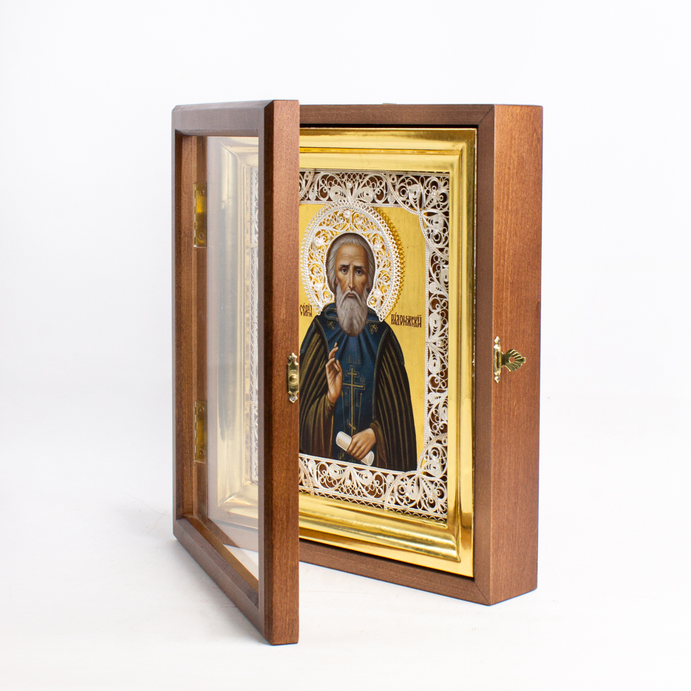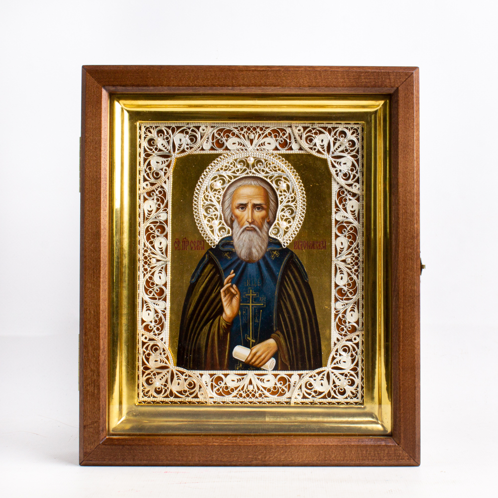 Икона живописная Прп.Сергий Радонежский 17х21 киот, скань