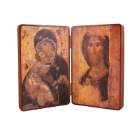 Икона дерево.лак. Складень двойной Спаситель и БМ Владимирская Рублев
