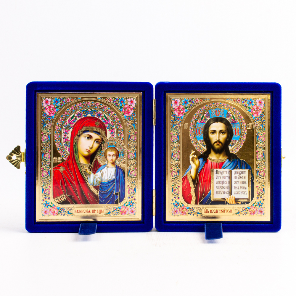 Венчальная пара представлена иконами: Казанская икона Божией Матери и Господь Вседержитель.