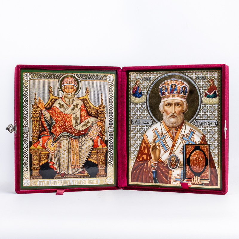 Складень бархатный 17х21 Спиридон Тримифунтский-Николай Чудотворец