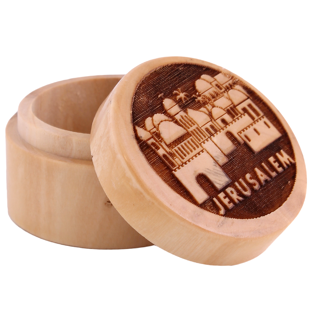 Шкатулка круглая из оливы Иерусалим 4,6см (509681)