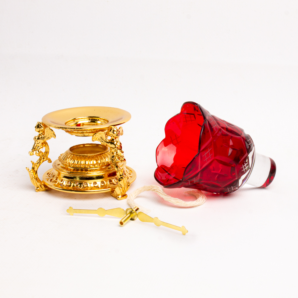 Лампада настольная (3410191) с литым основанием №5 золочение красная