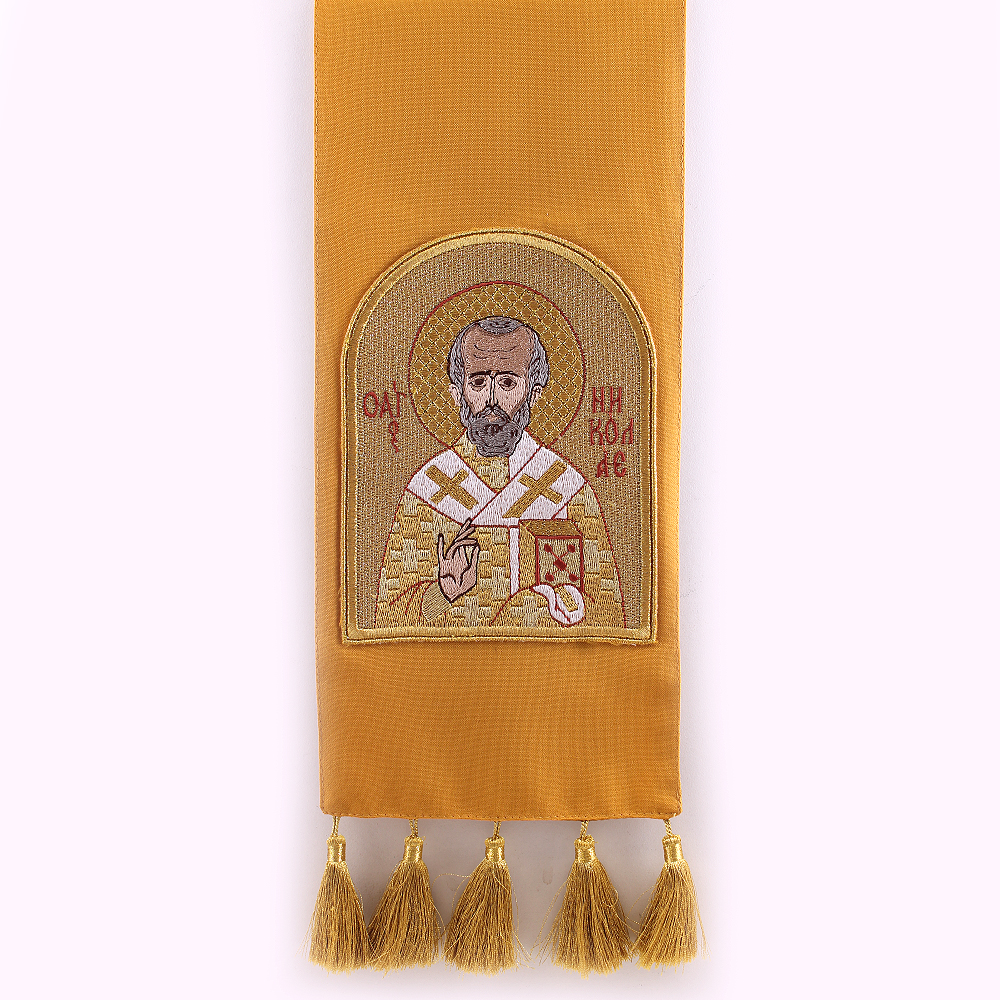 Закладка вышитая икона Св.Николай,желтая 14*150